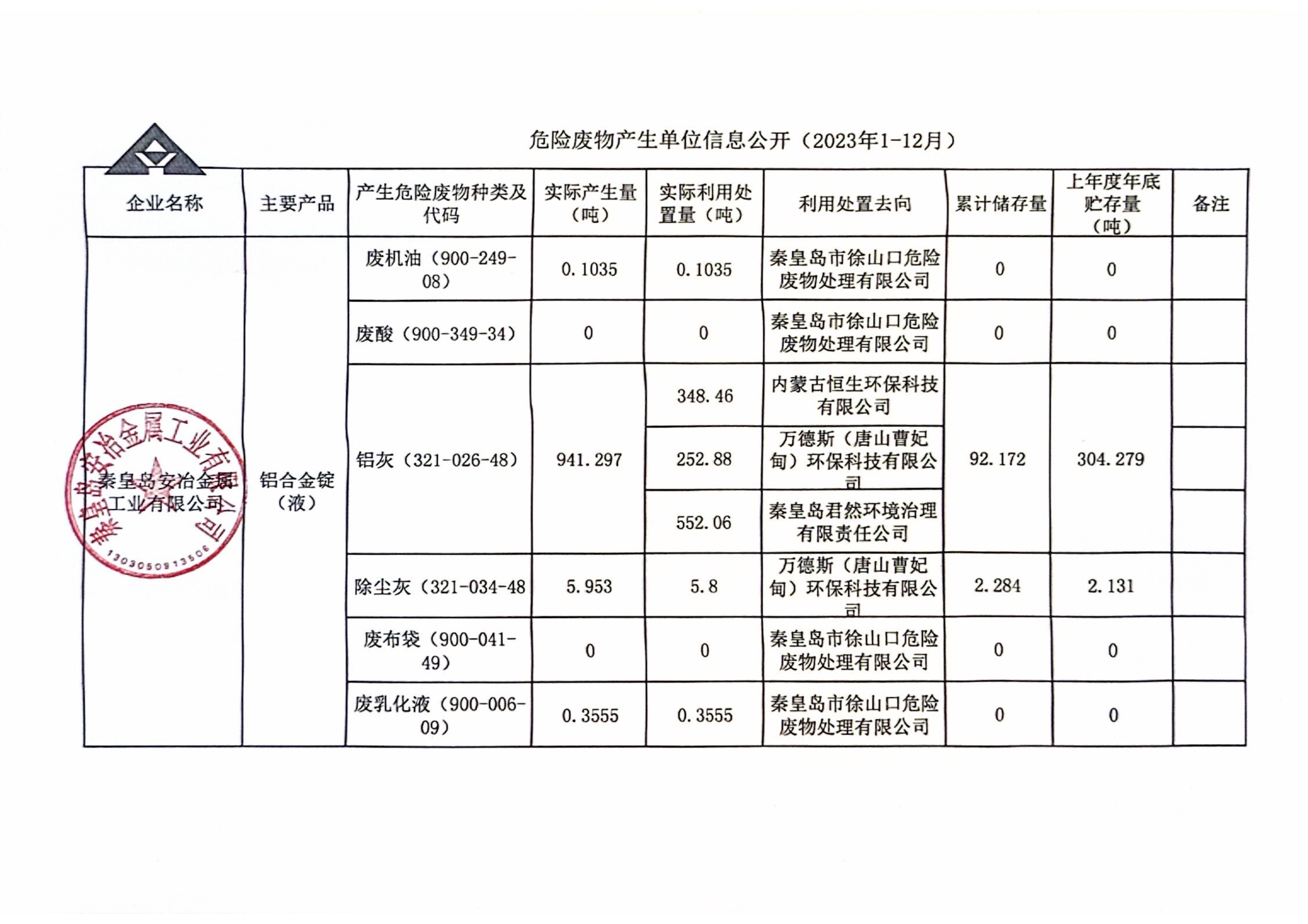 當(dāng)前位置:首頁-資訊中心-危險廢物產(chǎn)生單位信息公開(2023年1-12月)