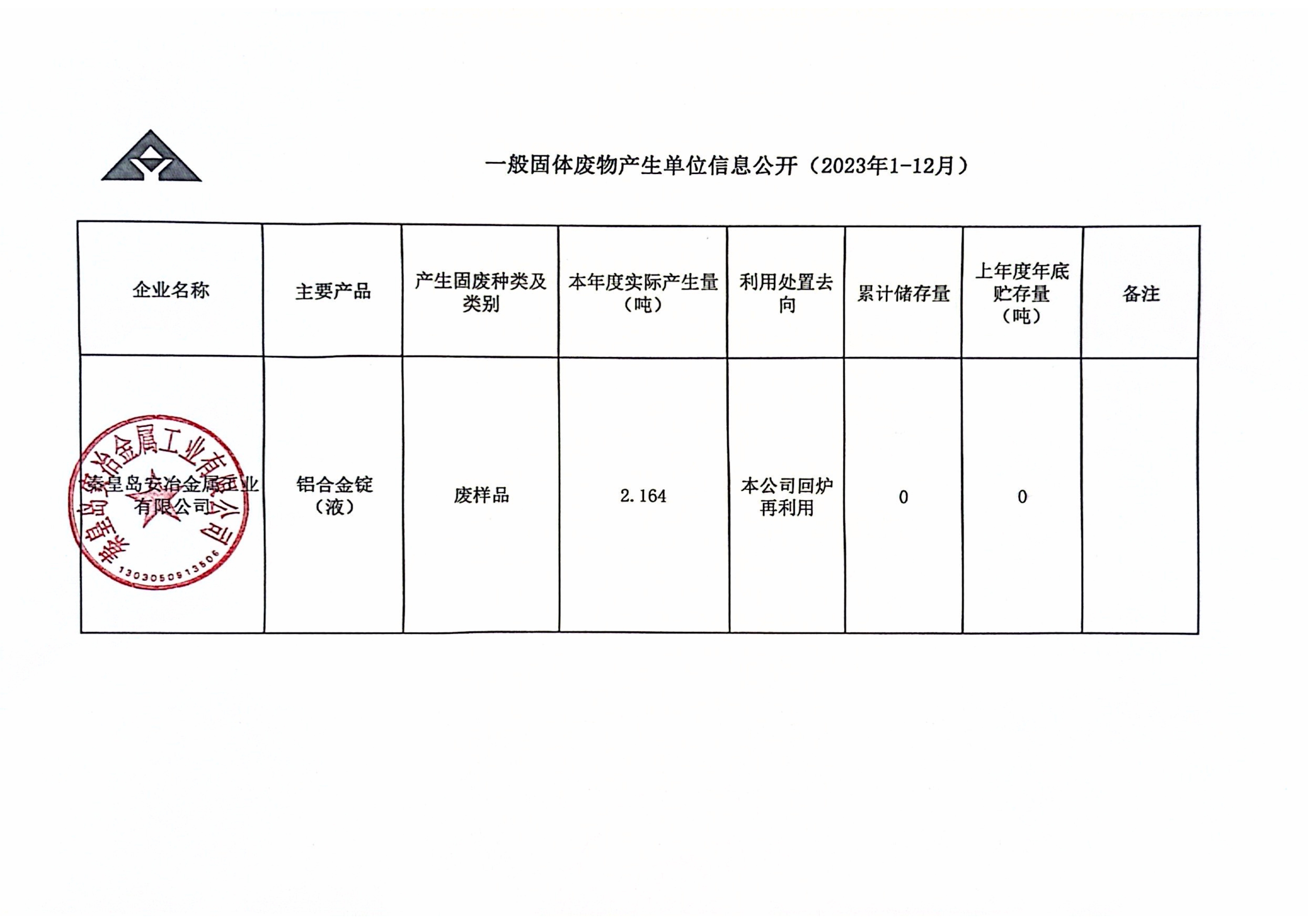 當(dāng)前位置:首頁-資訊中心-一般固體廢物產(chǎn)生單位信息公開(2023年1-12月)